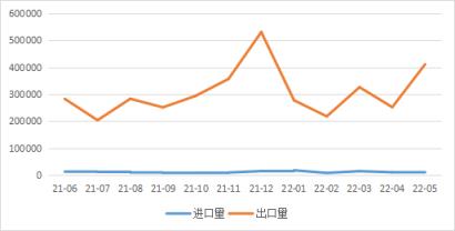 圖7 2022年上半年我國無縫管出口量、進口量走勢圖