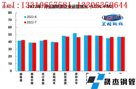 云商平臺(tái)統(tǒng)計(jì)發(fā)布的2022年7月份厚壁無縫鋼管流通業(yè)PMI總指數(shù)為46.7%,比上月回升0.6個(gè)百分點(diǎn),在收縮區(qū)間內(nèi)低位回升。從分類指數(shù)看,構(gòu)成厚壁無縫鋼管流通業(yè)
