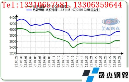 七月份國內帶鋼市場呈現震蕩下行趨勢。月初帶鋼市場價格整體趨弱運行,低價資源成交尚可,期貨市場寬幅震蕩,終端逢低補庫,高價成交疲軟。月中市場價格持續下行,整體成交偏弱,淡季效應顯現導致市場價格大幅走低,下游商貿情緒觀望為主。北方地區小窄帶方面,月末隨期貨震蕩走高,倒掛情況稍有緩解,為維持訂單及正常運轉,被動維持生產。7月帶鋼庫存持續小幅下降,無縫鋼管廠家產量也有所下降,需求端仍未得到改善。南方地區因疫情反復,加之目前正處于傳統淡季,商貿多以觀望為主,隨期貨盤整運行,市場商貿心態不穩,多以降庫為主,終端下游市場仍不景氣,觀望態度濃厚,實際需求延續偏弱,加之下游開工維持低位,帶鋼底部支撐不足。截止至7月29日,華北地區唐山小窄帶報價主流為3950元/噸,唐山355系窄帶鋼主流報價為3860元/噸,天津355系窄帶主流報價為4130元/噸,華東地區無錫355系窄帶主流報價為4050元/噸,華南地區廣州355系窄帶主流報價為4030元/噸。