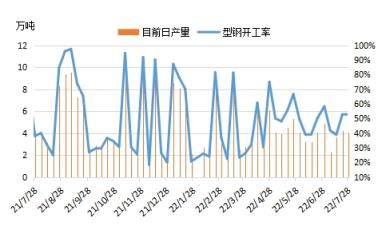 圖6 唐山型鋼開工率及日產量走勢圖